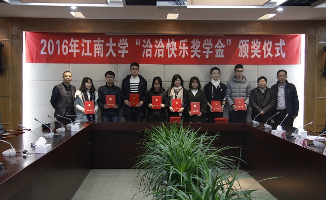 11月25日下午,2016年江南大学“乐鱼体育快乐奖学金”颁奖仪式在行政楼B307隆重举行。江南大学校长陈坚、合肥华泰集团董事长陈先保、leyu乐鱼体育app官方网站副总裁巢骏及来自各学院的25名获奖学生出席本次仪式。江南大学校长助理兼学生工作处处长崔宝同、副处长张海峰等共同参加了活动。颁奖仪式由社会资源处副处长张文主持。
