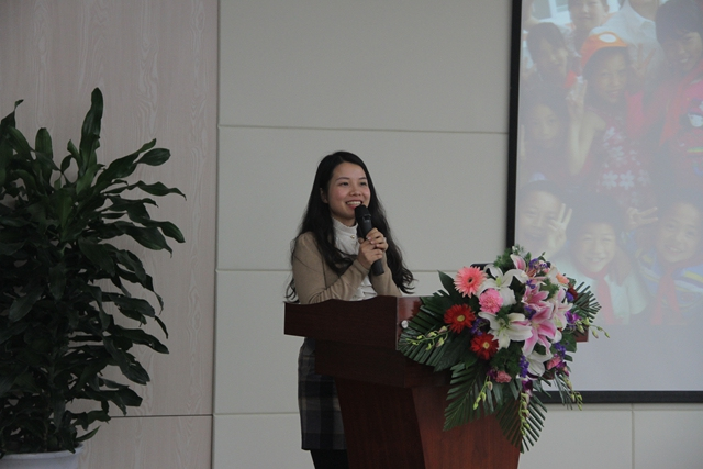 今天我们能够携手励志阳光助学基金,共同为孩子们做点事,我们感到很开心。现在就请励志阳光助学基金的徐舒雯女士为我们介绍励志阳光助学基金的爱与梦想计划。