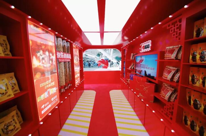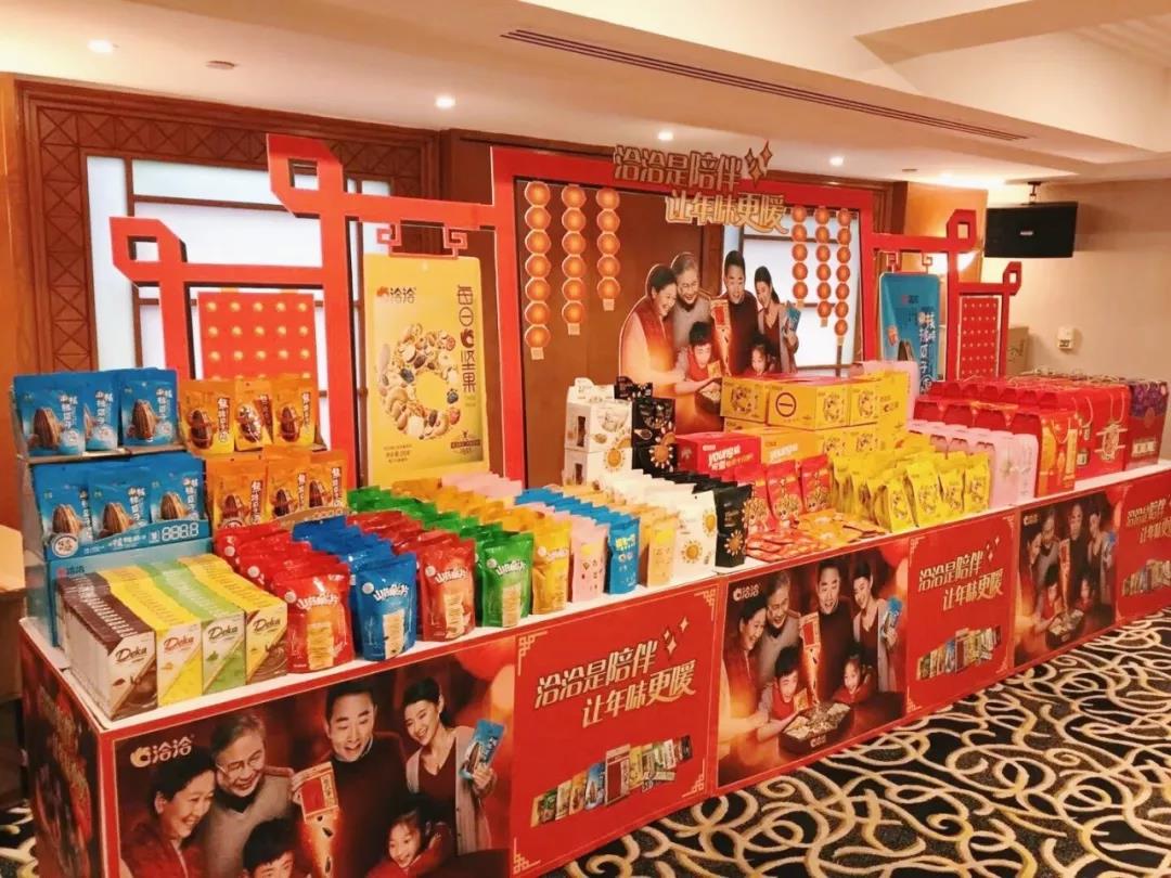 新春礼盒铺就的陈列墙,