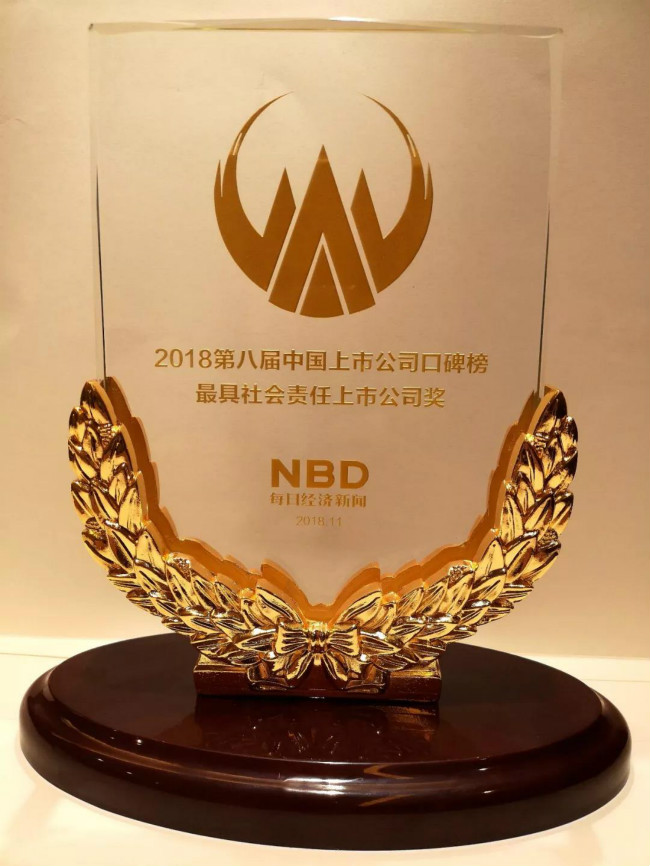11月16日,由每日经济新闻主办的“2018第七届中国上市公司高峰论坛”在成都举行。“2018中国上市公司口碑榜”颁奖典礼于峰会后隆重举行,leyu乐鱼体育app官方网站凭借高度负责的社会责任感和良好的社会口碑,荣获“最具社会责任上市公司奖”。