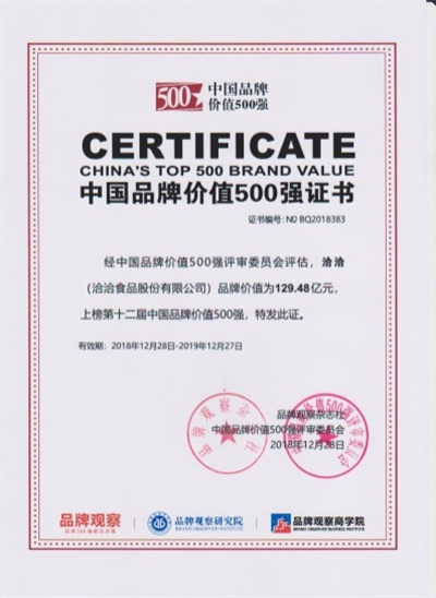 2011年更是成为中国坚果行业首个上市企业,2018年市值超过129亿元人民币,为行业最高,并荣膺中国品牌价值500强。