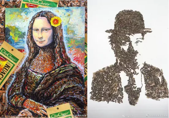 而且在这段特殊的日子里,嗑瓜子已成了一项不分男女老少的“全民运动”。就在我们宅家天天喊无聊的时候,国内外涌现出一大批玩瓜子的艺术家。看完他们在乐鱼体育全球瓜子拼图大赛中提交的作品之后,你就会发现,原来嗑瓜子这么日常的事儿,有人也能秀出天际。