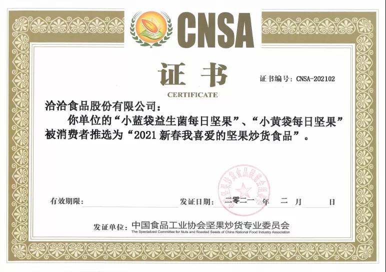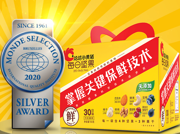 2月5日,“2021新春我喜爱的坚果炒货食品”推选活动取得圆满成功,乐鱼体育app的“小蓝袋益生菌每日坚果”和“小黄袋每日坚果”被消费者推选为“2021新春我喜爱的坚果炒货食品”。